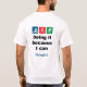 Gear for the triathlete! Blue swim icon, 3.8 kilometres; red bike icon, 180 kilometres; green run icon, 42.2 kilometres. “Nobody made me do this”, it says in the front. “Doing it because I can” at the back. Customise both of these texts, and add your name or initials. The distances are in the metric version. Imperial version coming soon!