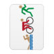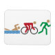 Triathlon icon pictographs with swimmer, bicyclist, and runner icons in colour for a bold athlete statement. Red, blue, and green design adds a twist to the traditional icon symbols. Add your own text above or below if desired.