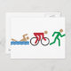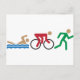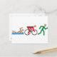 Triathlon icon pictographs with swimmer, bicyclist, and runner icons in colour for a bold athlete statement. Red, blue, and green design adds a twist to the traditional icon symbols. Add your own text above or below if desired.