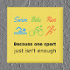 A funny and inspiring magnet for a triathlete. The text is "Because one sport just isn't enough". There are three "swim bike run" icons to portray a triathlon, in blue, green and orange on a bright yellow background.