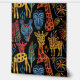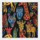 Ethnic, tribal wallpaper with giraffes, masks and other safari animals