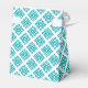 Bright tribal angular key style blue green teal on white thank you gift boxes. Ideal for wedding, celebrations and birthday favours. Designed by Sarah Trett.