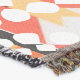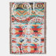 Bright and colourful throw blanket in a tribal inspired design pattern with orange, red, turquoise and white spotted circles. Pillows are also available in this design!