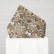 Tissue paper in a batik pattern of repeating shapes, with a tribal inspired theme, in shades of coffee brown and tan, on a light beige / cream background