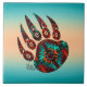 Brighten Your Home with this Unique "One of a Kind" Tribal Bear Paw Ceramic Tile! It Features a Native American Tribal Bear Paw on a Turquoise and Orange Background!
