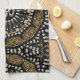 Customisable Home Decor Furnishings : Kitchen Tea Towel : Exotic modern eastern fusion inspired design in black and gold - with silver Om symbol in the centre » Great idea gift or personal purchase for your Yoga focus point. Enhance your kitchen, bedroom , office or any room doors with unique and alternative art designs.