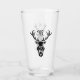 An illustration of an impressive ten point rack on a tribal black stag, done in black ink. Between the massive antlers is the letter "M", m is short for monogram and can be personalised.