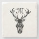 Tribal Black Stag Silhouette Monogram Stone Coaster
