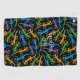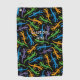 Colourful tribal lizard icons. Seamless pattern. Custom background colour. Custom text.