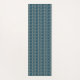 Stylish yoga mat features blue tribal / ethnic elephant and tropical tree pattern, and has a bit of an Indonesian Bohemian flair.