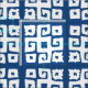 Tribal key greek square repeat pattern fabric. Ideal for quilting and other sewing projects. Key pattern is in white and the background colour can be changed to suit your requirements, currently blue. Art and design by Sarah Trett.