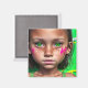 Tribal Kids | Futuristic Stoic Girl Green Eyes Magnet