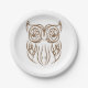 Tribal Owl Line Art Modern Brown Abstract Paper Plate