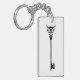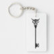Stylised black owl tribal skeleton steampunk key in a backdrop of white.