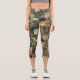 Tribal Patchwork in Teal and Gold – Custom Text Capri Leggings