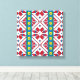 Tribal red, blue, and white star geometric pattern canvas print