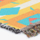 A quality printed throw has its advantages. This is a much finer weave throw than its loopier cousins, and though lighter, it is worth the investment for custom room accessorizing. The back is much prettier than the typical brown, and the fringe on the long sides very vivid, the selvage nicely done. Before photographing, I washed the throw in cold water, delicate, with a thicker woven throw the same size. On tumble dry low, this throw was dry in half the time as the other. This is a very practical quality if you use throws for furniture covers or to wrap up in frequently. The sleekness of the fabric makes it a great layer for accenting or protecting without the feeling of sitting on too much stuff. Perfect for napping or when you feel a light chill coming on. The color printing is beautiful and on this fabric, matched the design and color of my Photoshop image. This is an advantage for blending room fabrics and colors. The fringe on the short sides prints the colors from the design image and therefore varies from the side fringe. I streaked a white fractal line through the plaid pattern to give the illusion of weaving. This printed as crisp as an illusory thread, and put some white in the short side fringe, showing another advantage of print vs loomed- for artistic purposes, line lines, detail, and color integrity can be planned and preserved. My loomed throws have color limitations and more of a needlepoint texture. Print throws reproduce an exact image. The throw felt a little stiff straight out of the package, but this went away in the first delicate wash. Of course I searched the wash water for ink or bleeding and there was none.