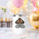 An illustration of a tiger moth flying over its shadow. The insect wing is spread wide enough to make a frame for the monogram. The M is short for monogram and can be personalised for your own initial. Within wings the black marks have been made into black ink tribal marks.