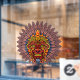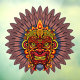Tribal Warrior King Ritual Mask surrounded by a Feathers crown ritual ornamental apparel . South America/Africa/Oceania Indigenous traditions and Culture. Original vector illustration copyright BluedarkArt TheChameleonArt.