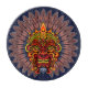 Tribal Warrior King Ritual Mask surrounded by a Feathers crown ritual ornamental apparel . South America/Africa/Oceania Indigenous traditions and Culture. Original vector illustration copyright BluedarkArt TheChameleonArt.