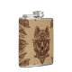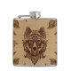 Tribal Wolf and feathers leather embossed effect Hip Flask