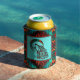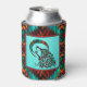 Put Your Favourite Beverage in this "One of a Kind" Wolf Can Cooler! It Features a Southwest Tribal Wolf Howling at the Moon...on a Turquoise Background...Surrounded by a Southwest Border in Turquoise, Orange & Black!