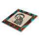 Brighten Your Home with this Unique "One of a Kind" Tribal Wolf Ceramic Tile! It Features a Native American Tribal Wolf Howling at the Moon on a Tan Sandstone Background...Surrounded by a Southwest Border in Turquoise, Orange & Black!