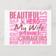 There’s a person in your life who has shown you what being a hero means. She’s faced the ultimate opponent and she’s done it with incredible courage, tremendous strength, and extraordinary grace. This amazing person is your wife. Honour, celebrate, and support this pillar of valour with our Tribute Square t-shirts, gifts, and apparel featuring a collage of poignant words that sum up her heroism arranged in an eye-catching square pattern of text in varying shades of pink and a pink breast cancer support ribbon.