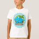 Cool, colourful kid's blue and yellow Triceratops Dinosaur, green palm tree, brown volcano design on Sky Blue & White Stripes pattern. Perfect gift for baby, toddler, kids, children, teens, or adults! Personalised the design by adding a child's name or custom text. Visit our store, Birthday Party House, for more great customisable boy and girl products!