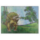 Animal Parade Cute Triceratops Dinosaur Gifts and Accessories brought to you by Imagine That! Design features our original art of a cute triceratops from the front and the back standing in a green prehistoric landscape with a textured blue sky and a fun wavy purple border painted by our talented children's illustrator, Traci Van Wagoner. This playful triceratops dino is great gift for kids of all ages, and is sure to bring a smile to the faces of all dinosaur lovers on your gift list.