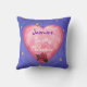 Animal Parade Romantic Triceratops Love pillow features our cute triceratops holding a beautiful red rose in its mouth while standing in front of layered pink, red, and purple hearts, and the word, LOVE, curving over the top, with a starry dark blue background. This whimsical dinosaur and heart art was digitally painted by our talented children's book illustrator, Traci Van Wagoner, and is sure to bring a smile to the face of anyone who loves dinosaurs, animals, romance, and red roses. On the back you can add your special someone's name in purple above the customisable message, Be My Valentine, in a whimsical white font inside the pink layered hearts and night sky background. This fun dino in love pillow is a perfect gift for Valentine's day, or his or her birthday, or for proposing marriage in a fun and original way, or just to say, I love you. Say it with the help of this romantic dinosaur offering a beautiful red rose.