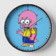 Triceratops Nerd With Backpack And Textbook. Clock