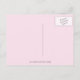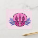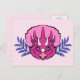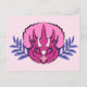 A girly pink and purple triceratops portrait flanked by abstract purple leaves decorates this pretty postcard.