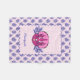 This easy to personalise fleece blanket feature a pretty pink triceratops graphic and purple leaf pattern on a pale pink background.