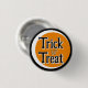 Trick or treat buttons in orange and black.round and other options of different shapes are available.