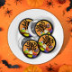 You can choose various sizes on this one - choose smaller for everyday wear - choose a large one and add some ribbon and you could easily have an award for best-dressed costume! This is a super cute button that features cupcakes decorated as monsters with a cool Trick or Treat message in black and orange and circled by bats!