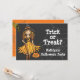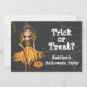 Fun girls Halloween party invite. Featuring cute girl dressed as a pretty witch with a pumpkin and broomstick. Personalise with your name, party details, address and RSVP. Uniquely designed illustration and design by Sarah Trett for www.mylittleeden.com