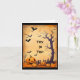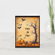 Vintage, picture of a tree, flying bats and pumpkins, is featured on this Halloween greeting card. Front of card reads, "Trick Or Treat" and inside reads, "Time Is Here. Have Halloween Fun But Not A Too Spooky One. Boo To You, And A Happy Halloween Too!" A cute, but not too spooky card to send a child for Halloween!