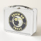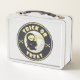 This is a standard metal lunchbox that appears to work just fine. We designed this box ourselves with an uploaded photo and custom text on the front and back. It looks absolutely beautiful except the front of the lunchbox is not centered like it shows in the photo. The print borders don't align with the inset flat part of the box where the preview photo online showed it perfectly centered in there. The back looks nice and centered though.