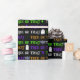 Trick or Treat Halloween wrapping paper with ghosts and bats. the Trick or Treat words are in classic Halloween colours of orange, green or purple. You can make this Halloween pattern smaller or bigger on the wrapping paper.
