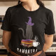 Embrace the magic of Halloween with our enchanting personalised t-shirt design, featuring a mischievous black cat perched atop a stack of ancient spell books, wearing a crooked witch's hat with just the right amount of whimsy. Add your name (or the name of your favourite aspiring witch or wizard) below this spellbinding design to create a truly unique piece that captures the playful spirit of the spookiest season. This bewitching shirt makes the perfect addition to your Halloween wardrobe or a thoughtful gift for anyone who believes in the magic of All Hallows' Eve.