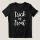 Celebrate Halloween in style with this "trick or treat" shirt featuring modern white script lettering.