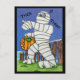 Image is from my original colour pencil drawing. This silly mummy is out trick or treating with his pumpkin full of candy and has found himself tangled on a wooden fence. The text reads Trick or Treat. See my store Art by MAR for matching products with this design.