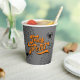This typography paper cup design for Halloween features spiders and spiderwebs creeping around an orange 'Trick or Treat' sign.....a dangling spider and a black widow make this especially creepy! Add a bright purple or even a dark green background for a completely different look. Search ID680 to see other products that match this pattern.