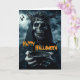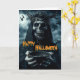 Halloween card featuring the very last face you will see on All Hallows Eve holding out a begging bowl that no amount of candy can fill. Add your message inside in that same creepy font.