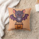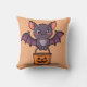 The cutest candy collector. This pillow is perfect for little monsters and adults alike, featuring a friendly bat and a smiling pumpkin pail. A charming and fun accessory for the spooky season!