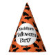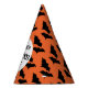 Halloween Ghost Pattern Personalised Orange Black and White Party Paper Hats. Customise these fun and spooky kids party treat bags for Halloween. Orange background with black bats. Personalise with name for a Halloween party or edit text to write in birthday party or other words. Customise to change font size and colour in order to fit more words. Check out our coordinating Kids Halloween Spooky and Fun decorations and party supplies.