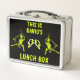 This is a standard metal lunchbox that appears to work just fine. We designed this box ourselves with an uploaded photo and custom text on the front and back. It looks absolutely beautiful except the front of the lunchbox is not centered like it shows in the photo. The print borders don't align with the inset flat part of the box where the preview photo online showed it perfectly centered in there. The back looks nice and centered though.