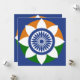This design showcases the essence of the Indian flag with a modern twist. The central Ashoka Chakra, drawn with clean lines, stands out against the tricolor background. The simplicity of the design allows for versatile applications, from digital invitations to banners or t-shirts for Independence Day celebrations.