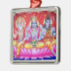 An ornament featuring an image of Brahma, Vishnu, and Shiva.